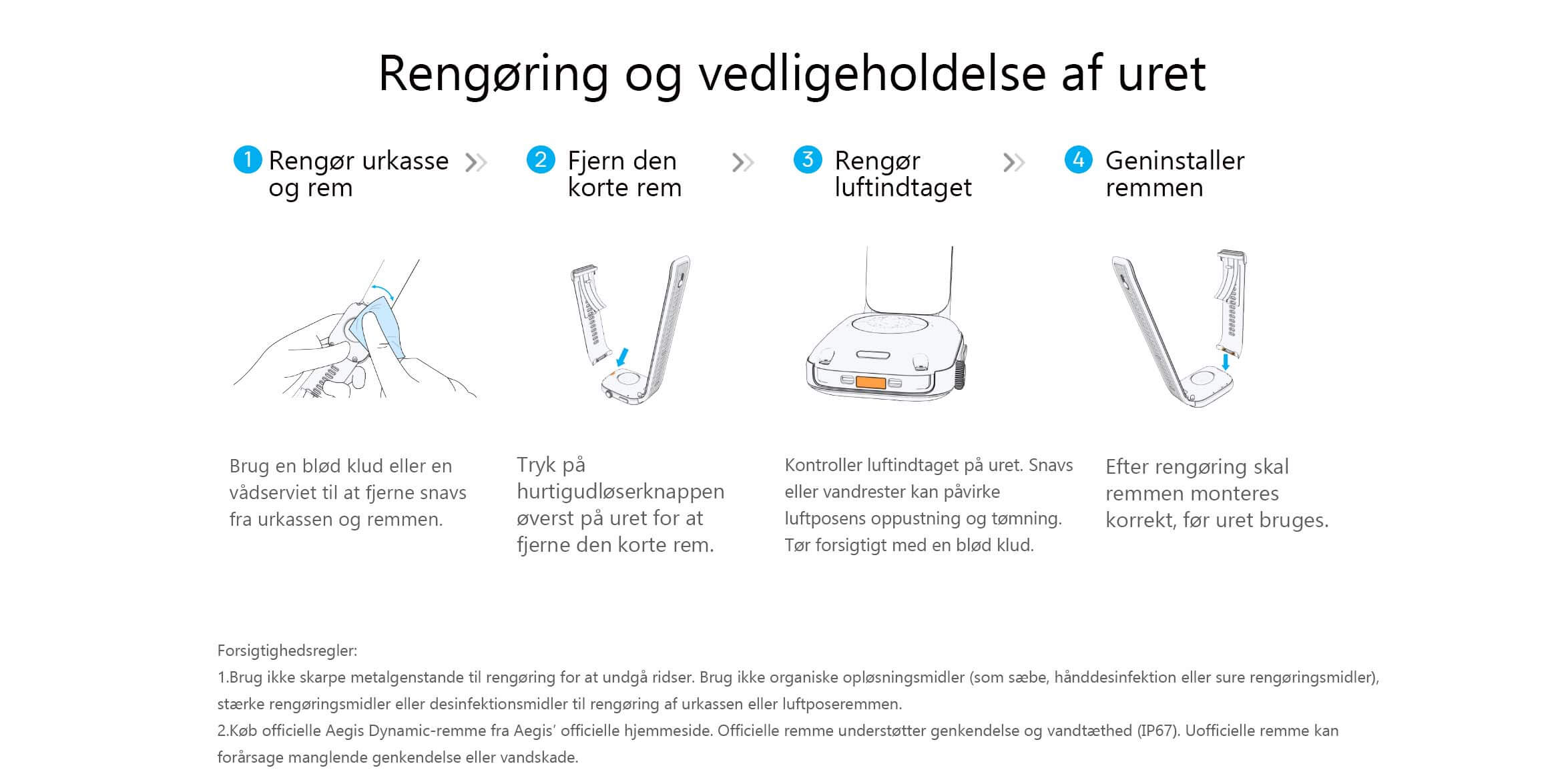 | Assistentfunktioner | Musikkontrol, Afvis opkald, Tastepad, Siri-opkald, Find telefon, Find armbånd, Skift urskive, Ryst for at tage foto |