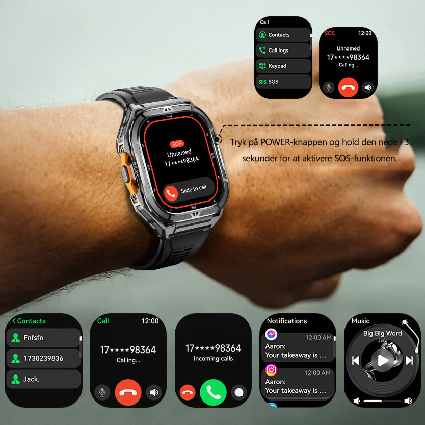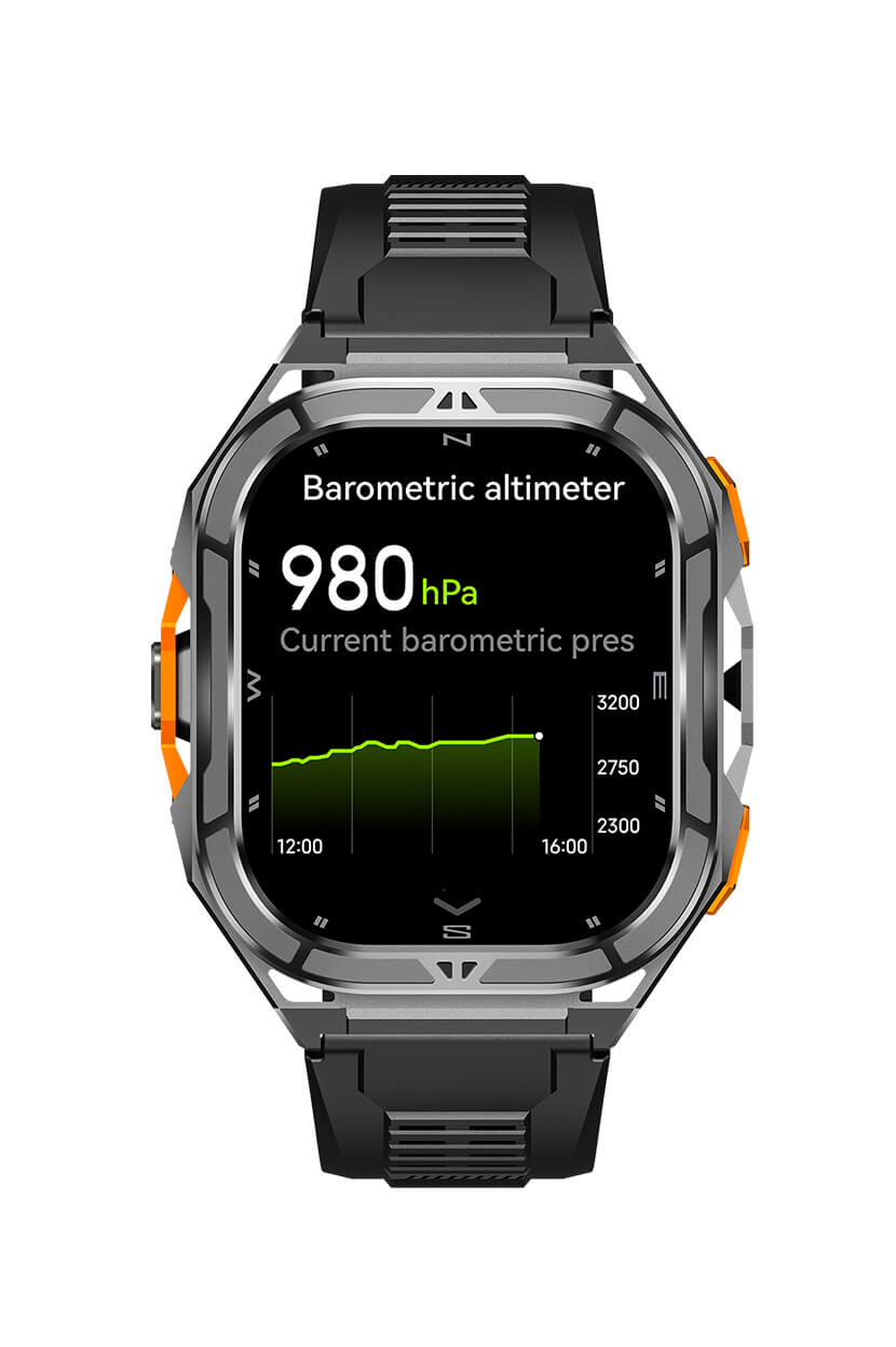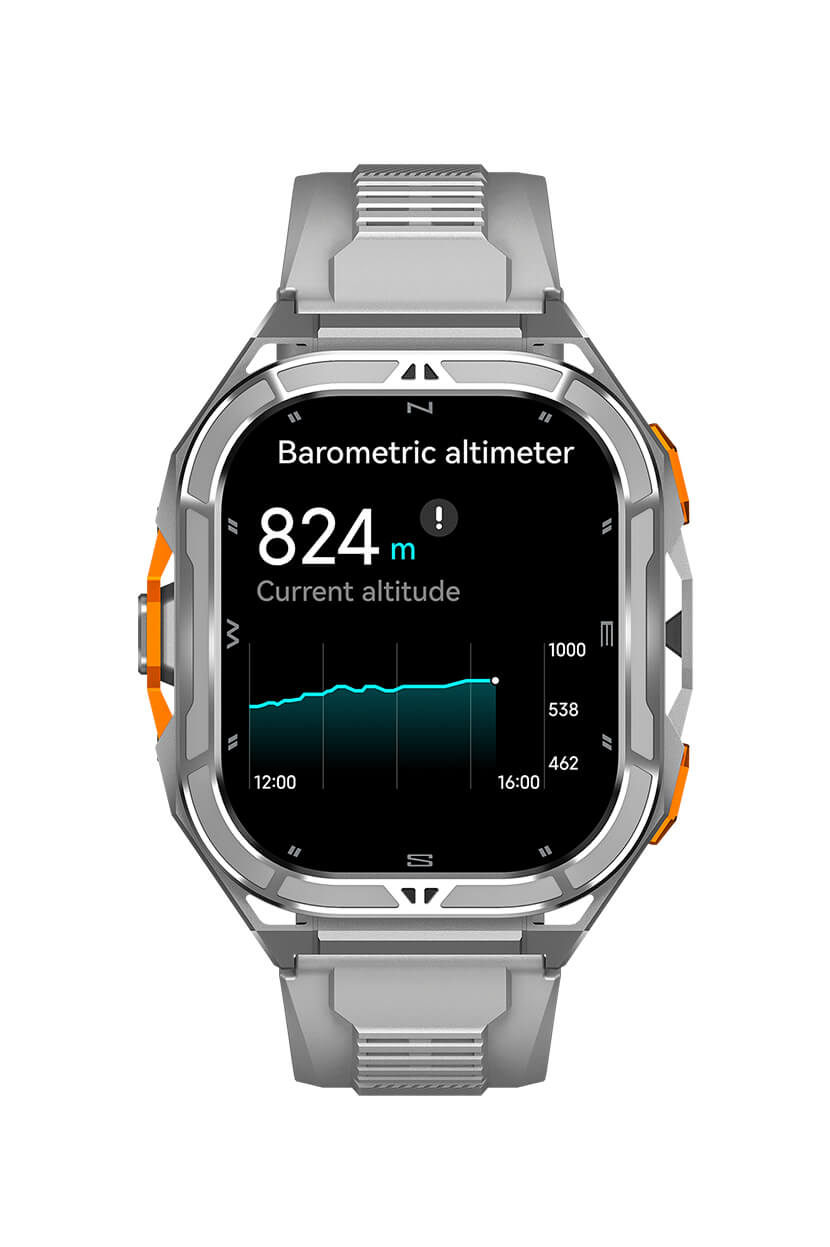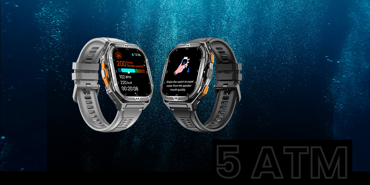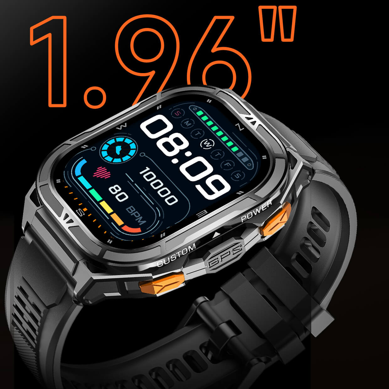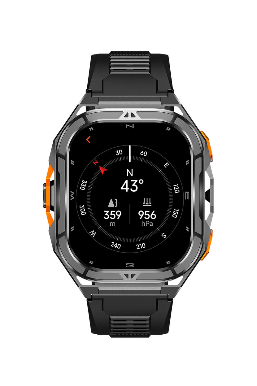 Crafted with a zinc alloy case and Corning Gorilla Glass 3, featuring 5ATM + IP69K water and dust resistance. Fireproof back and shock absorption make it resilient even in extreme environments.