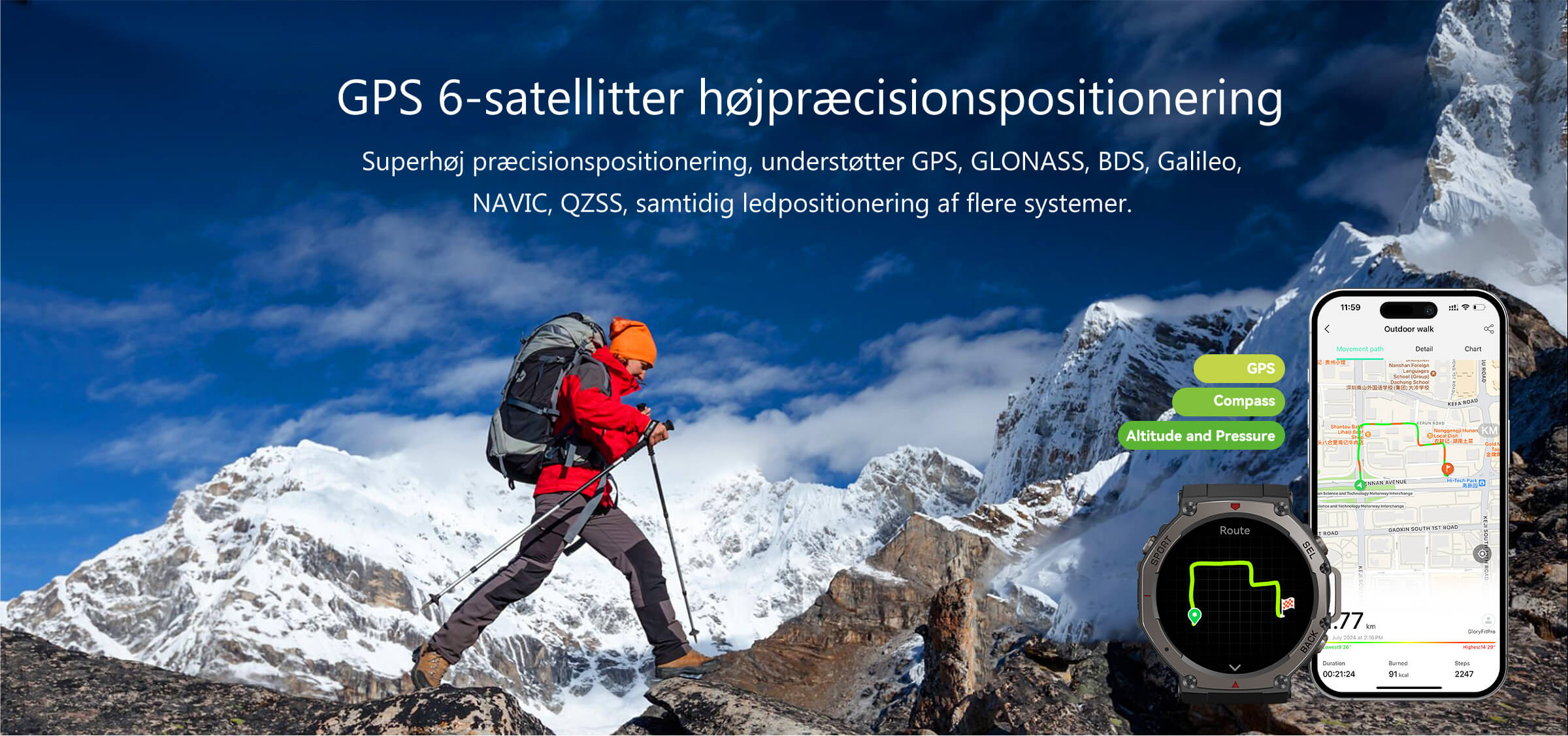Med et dobbeltfrekvens 6-satellitpositioneringssystem giver den mere stabil og præcis positionering og sporing under løb, cykling, vandreture og andre aktiviteter.