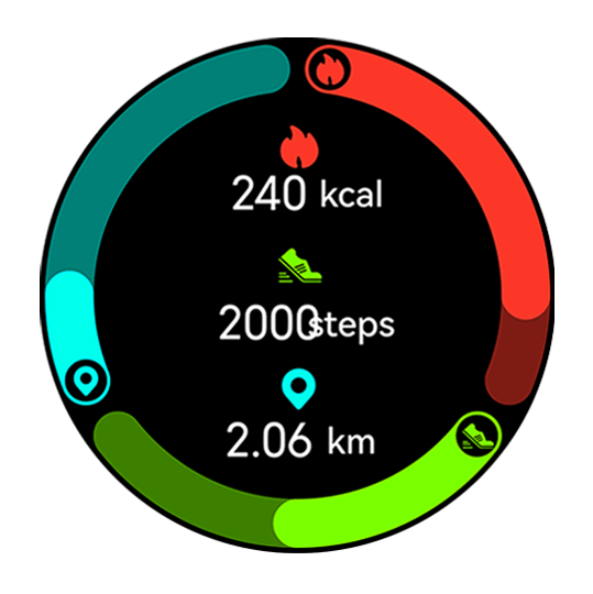 Indbyggede sensorer inkluderer pulsmåler, rødt/infrarødt lys til iltmætning (SpO2), tyngdekraftssensor, kompas, barometrisk højdemåler osv. Den kan overvåge kadence, hastighed, højde og andre data og understøtter 170+ træningstilstande til svømning, romaskine, indendørs og udendørs aktiviteter.